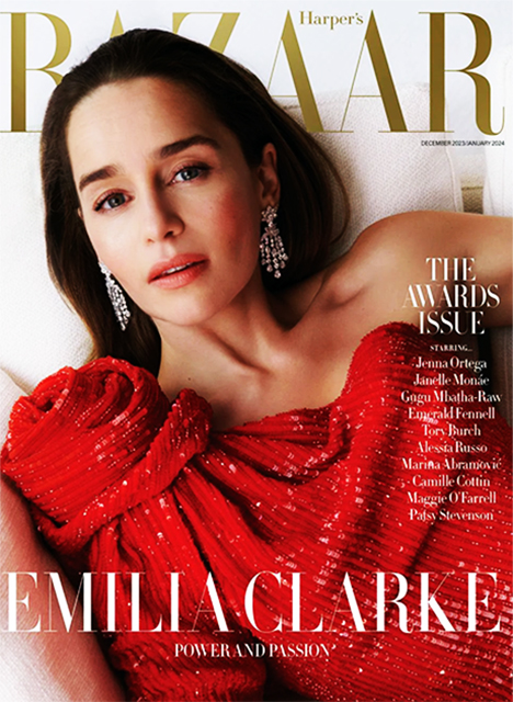 bazaardec2023 Full size 468 × 640 pixels HARPER’S BAZAAR Magazine Emilia Clarke, Jenna Ortega, The Awards Issue (Dec 2023/Jan 2024)