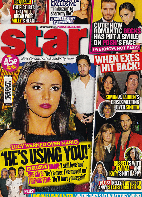 star502 Full size 461 × 640 pixels Star Magazine Issue 502 Lucy & Mario, London Fashion Week (30 September, 2013)