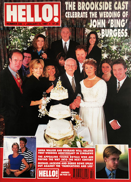 hello440 Full size 462 × 640 pixels HELLO! Magazine Issue 440 Brookside, John Burgess Wedding, Marcello Mastroianni (January 11, 1997)