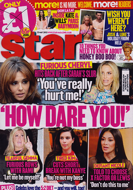 star482 Full size 448 × 640 pixels Star Magazine Issue 482 Cheryl, Sarah, Gemma, Kim, Nicole (13 May 2013)