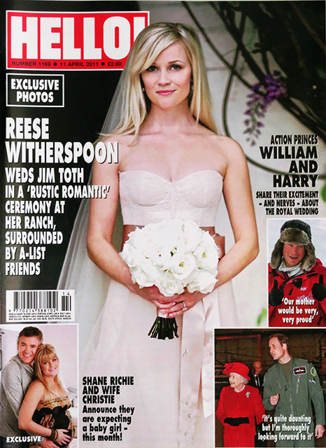 hello1169 Full size 466 × 640 pixels HELLO! Magazine Issue 1169 Reese Witherspoon, William & Harry, Susan George, Tara Palmer-Tomkinson (11 April 2011)