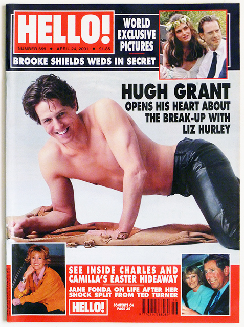 HUGH GRANT Exclusive, revealing interview, on rages & missing LIZ HURLEY (6 pages)