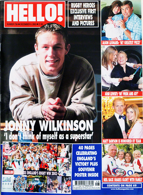 THE RUGBY WORLD CUP 2003 – 41 PAGES celebrating England’s heroes: JONNY WILKINSON, DIANA STEWART, MARTIN & KAY JOHNSON, CLIVE WOODWARD, NEIL & ALISON BACK, JOSH LEWSEY & TAMSYN LEACH, JASON LEONARD & SANDRA-JANE RODDHAM, MATT DAWSON & JOANNE SALLEY, KYRAN BRACKEN …